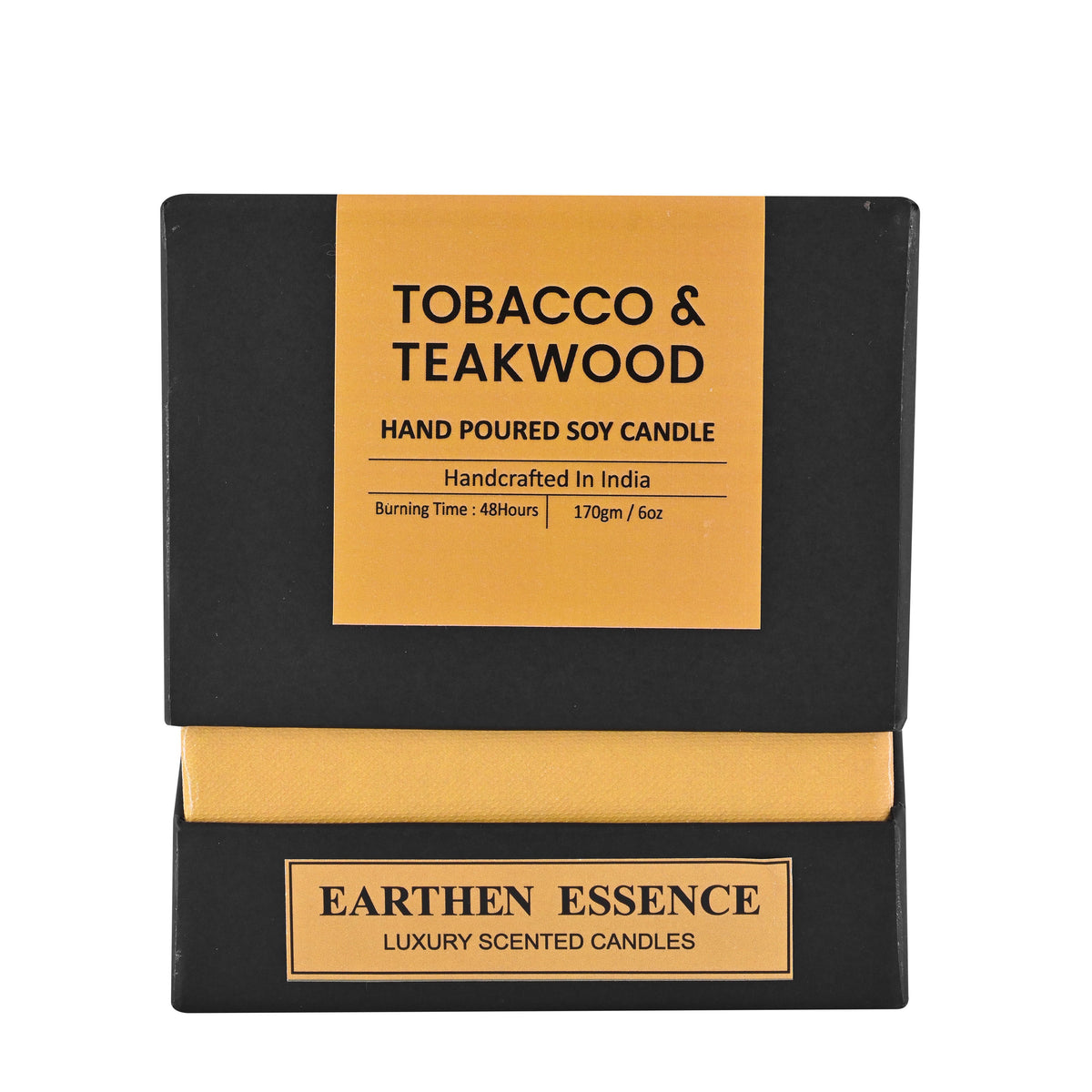 Tobacco & Teakwood Fragrance Candle is completely handcrafted and is made up of non-toxic products. The wax used in this candle is soy wax and it is biodegradable.