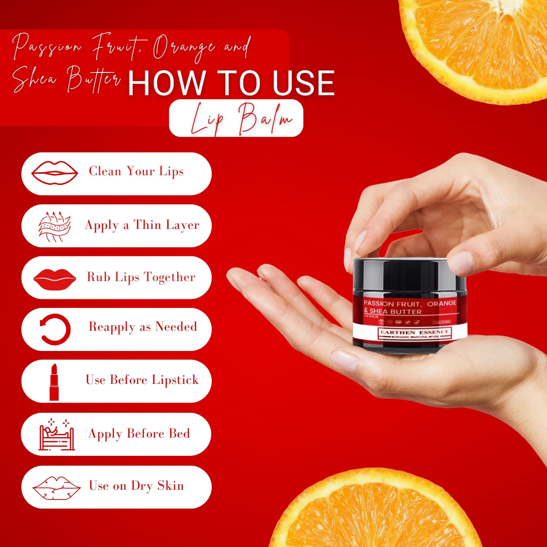 Experience a burst of tropical freshness with Earthen Essence Passion Fruit, Orange & Shea Butter Lip Balm, formulated to deeply hydrate and protect your lips with the purest natural ingredients. Infused with the uplifting essence of passion fruit and sweet orange, this balm delivers a refreshing citrusy aroma while providing essential vitamins and antioxidants. Rich shea butter intensely moisturizes, while ECOCERT-certified organic beeswax creates a protective barrier, locking in hydration for soft, smooth lips all day long.