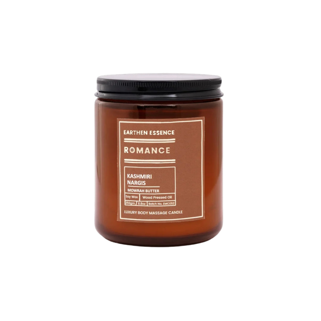 Infuse your moments with passion and tenderness using Earthen Essence "ROMANCE” Massage Oil Candle. Handcrafted with pure soy wax, deeply moisturizing oils, and a sensual blend of essential oils, this candle melts into a warm, luxurious oil perfect for romantic massages or self-care rituals. Its alluring fragrance sets the mood for love while nourishing the skin, leaving it soft, smooth, and delicately scented.