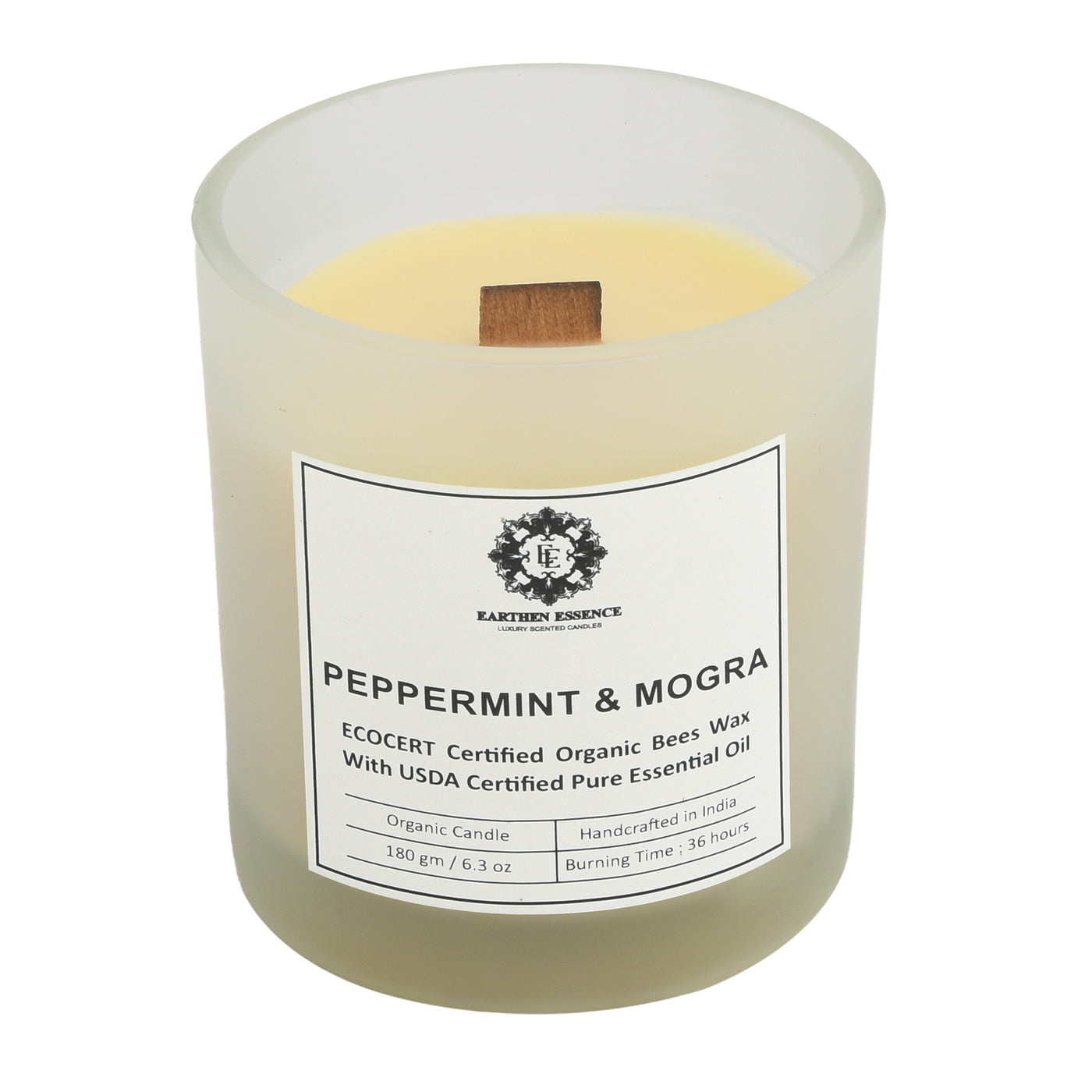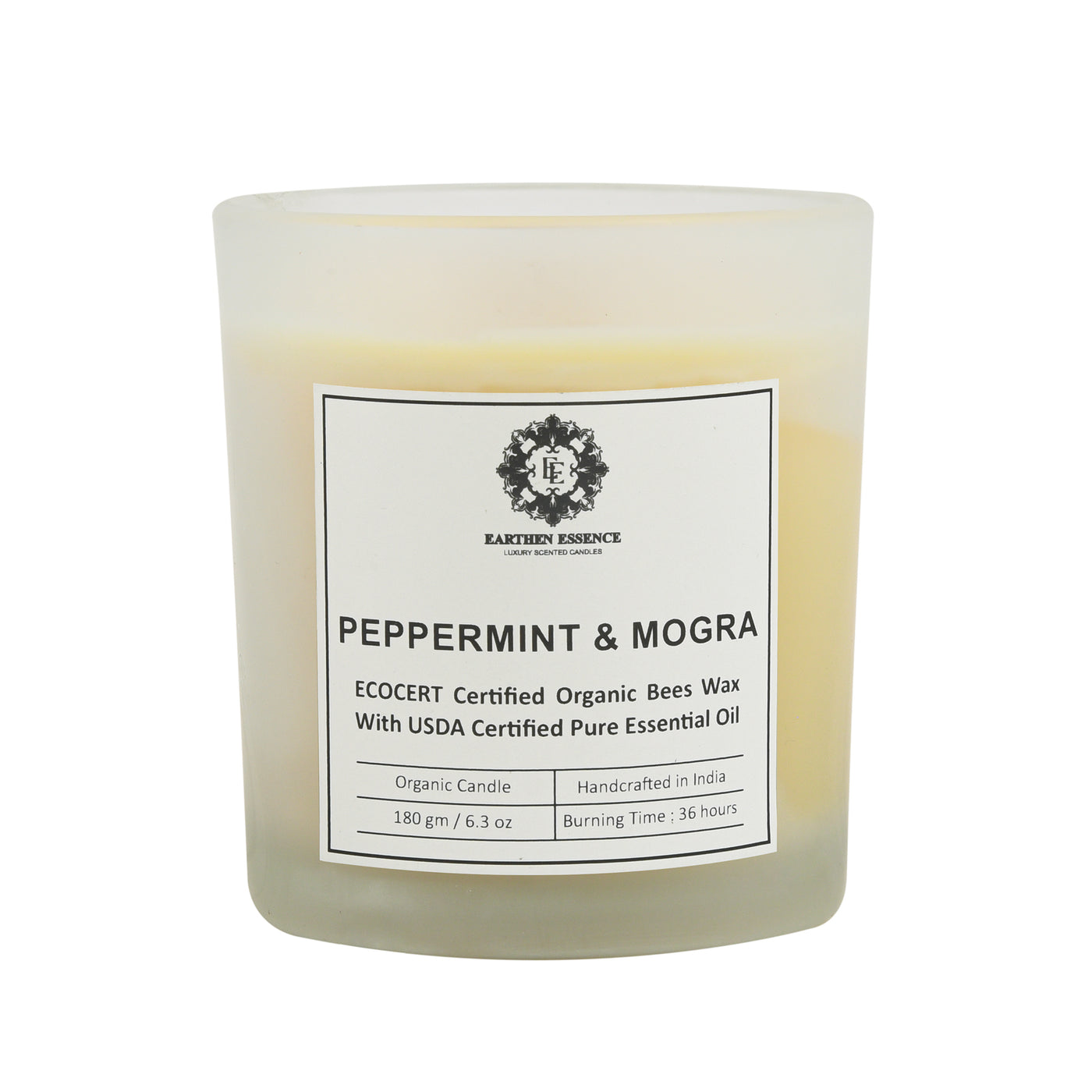 The Organic Bee wax Peppermint & Mogra candle is a specialty of Earthen Essence’s Pristine collection. It is India’s first 100% ecocert-certified organic candle. The bee wax used in this candle helps in purifying the air and has a great environmental impact. Bee wax candles have air-cleansing properties and are amazing to light around people who are suffering from asthma, allergies, and sensitivities.