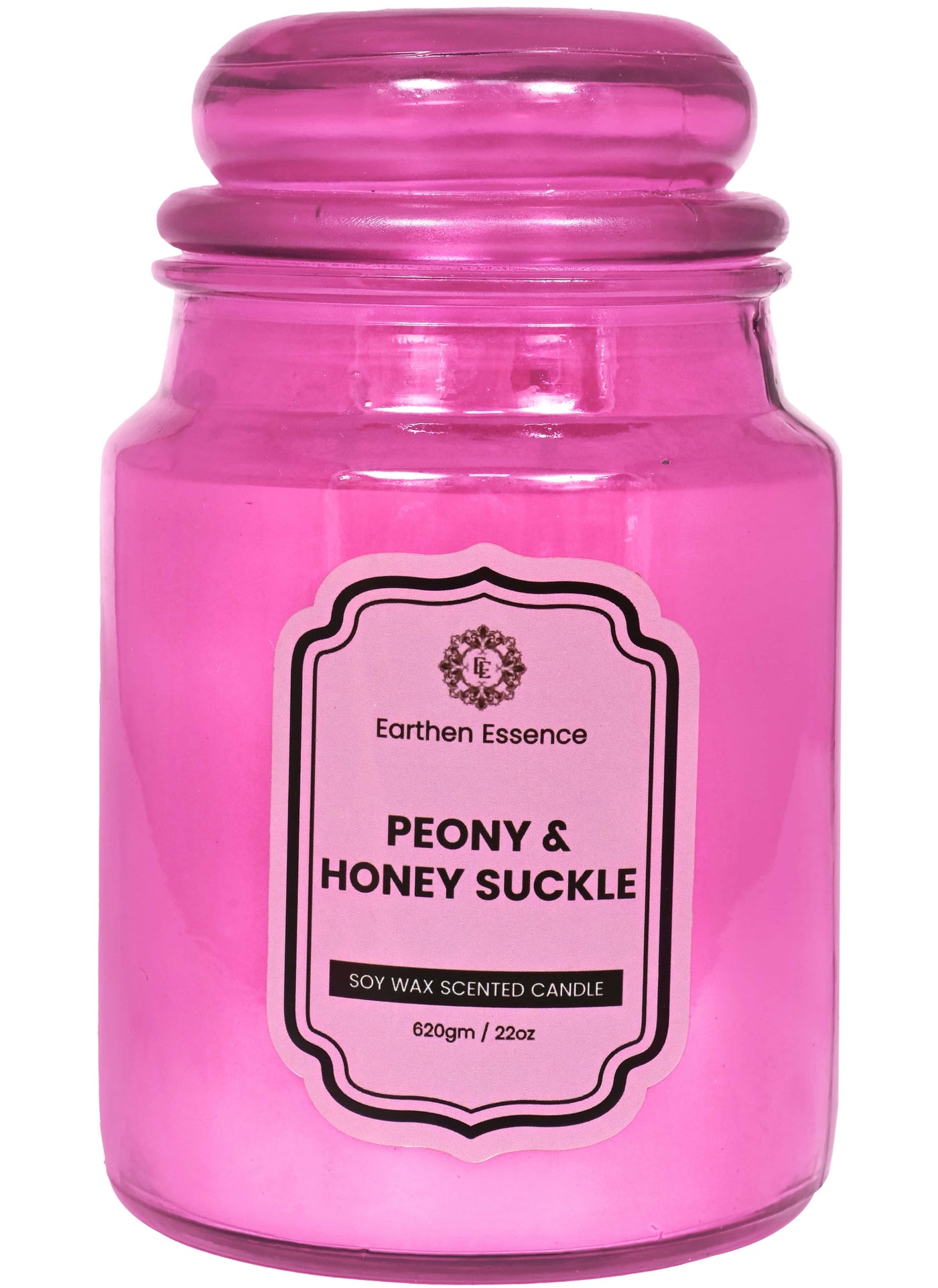 The Peony & Honeysuckle candle's scent is delightful to the senses. The peony blossom is a symbol of luck, dignity, adoration, and wealth. The aroma of these colorful, magnificent blooms calms the senses and imparts a peaceful atmosphere.